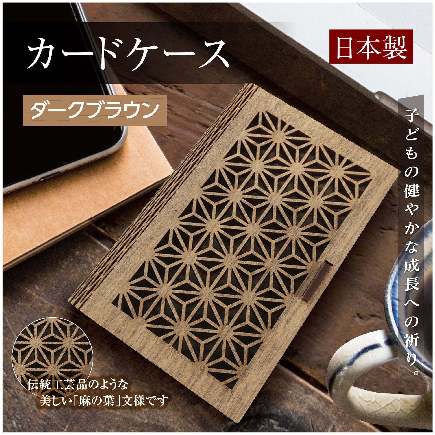 【日本製】名刺ケース カードケース 木製 MDF 麻の葉